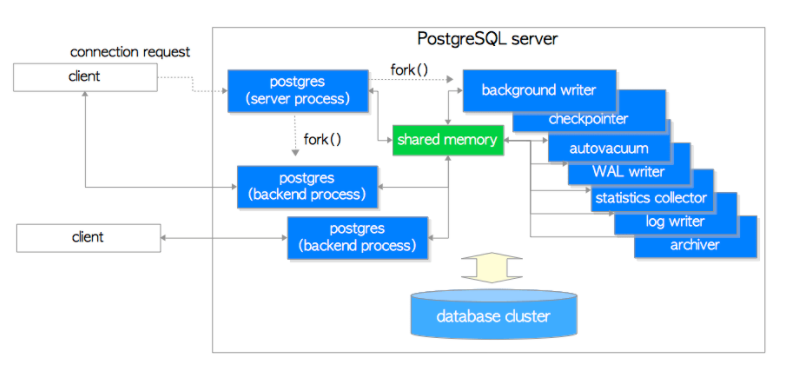 - stats collector : 세션 수행 정보 (pg_stat_activity)와 테이블 사용 통계 정보 (pg_stat_all_tables)와 같은 DBMS 사용 통계 정보를 수집한다.